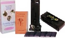 alone product without needing to plug in or connect to anything. The Fertility Tracker has 100X magnification (twice as strong as lipstick models). A stronger magification helps you to spot your fertile days long before the competition sees them coming. The The Fertility Tracker does not come with only a fold out tri-fold brochure but with a full 44 page booklet of information covering more than just ferning. Also unlike other saliva ferning products, The Fertility Tracker comes with six (6) reusable acrylic slides in a slip case allowing you to "revisit" past days and compare the results. This is very important to those who are insecure about remembering what previous days looked like. This is something that can not be done with the lipstick models, which have only one small permanent slide. The Fertility Tracker is NOT expensive. There is certainly something to be said for the expensive fertility monitor models like the OvaCue, which we also carry in our store, but if $289 for an OvaCue monitor is not in your budget the The Fertility Tracker is the best thing in ovulation prediction. |